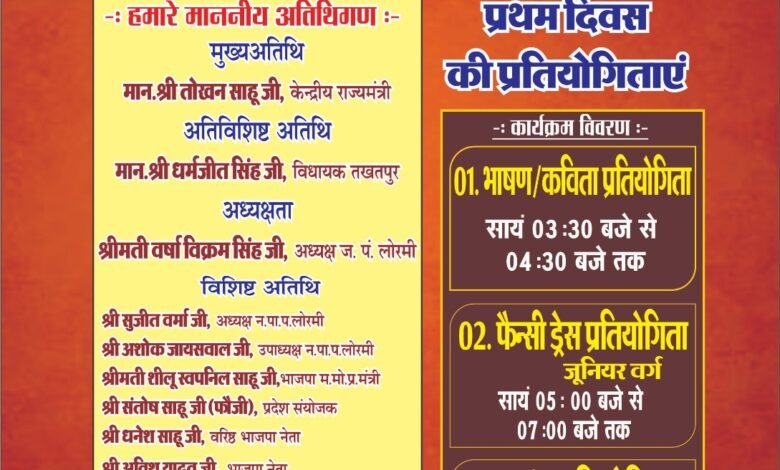 Read More »मुंगेली। जय झूलेलाल सेवा मंडल ‘बढ़ते कदम’ युवा विंग, मुंगेली के तत्वावधान में आगामी 16 मार्च 2026, सोमवार को भव्य…