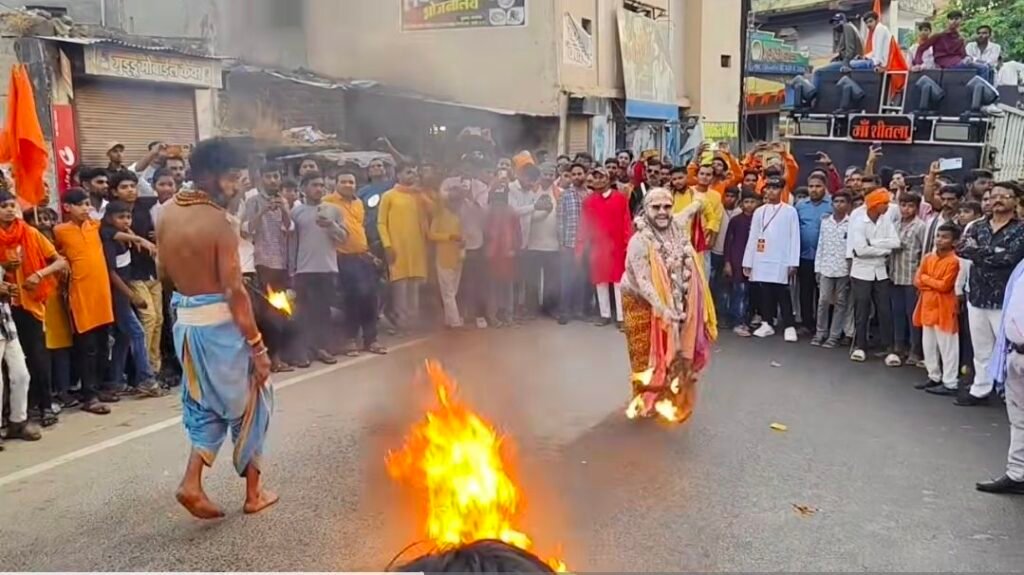 शोभायात्रा का नगर भ्रमण के दौरान पुष्पवर्षा और जलपान से भव्य स्वागत किया गया: