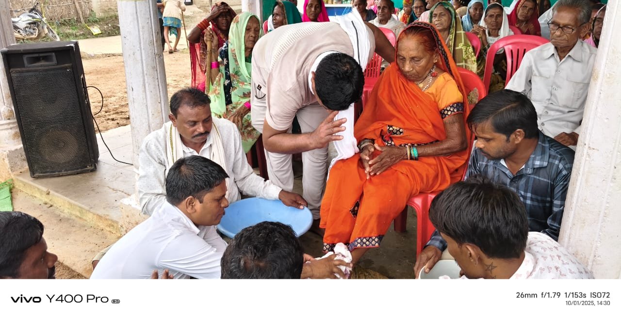 सर्वप्रथम गांव की सभी वरिष्ठ नागरिकों के पूजा अर्चना कर कार्यक्रम का विधिवत शुभारंभ किया गया।