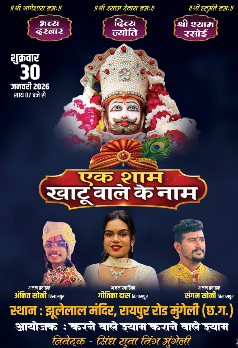 मुंगेली में गूंजेंगे बाबा श्याम के जयकारे: 30 जनवरी को भव्य भजन संध्या और महाप्रसाद का आयोजन