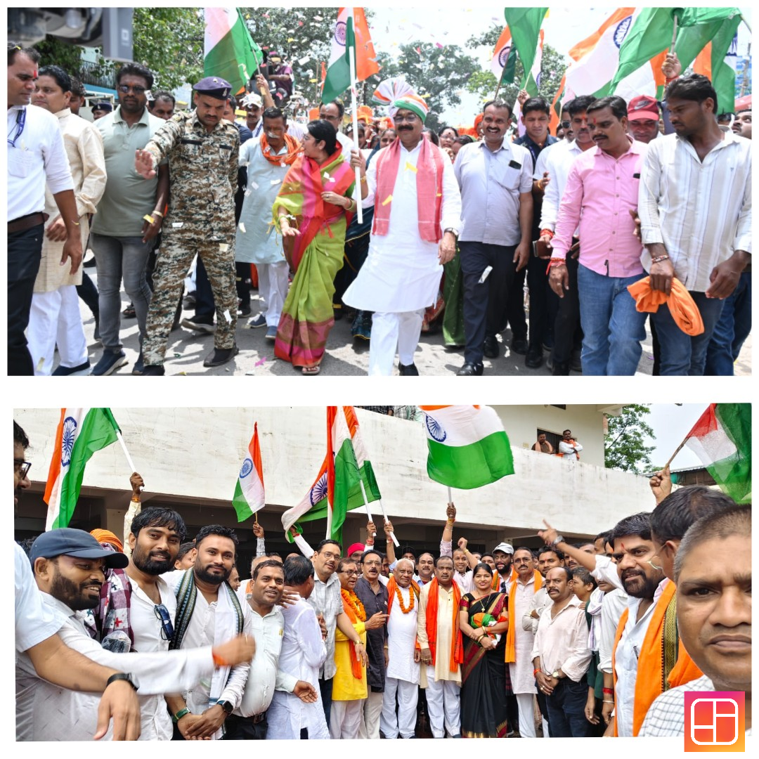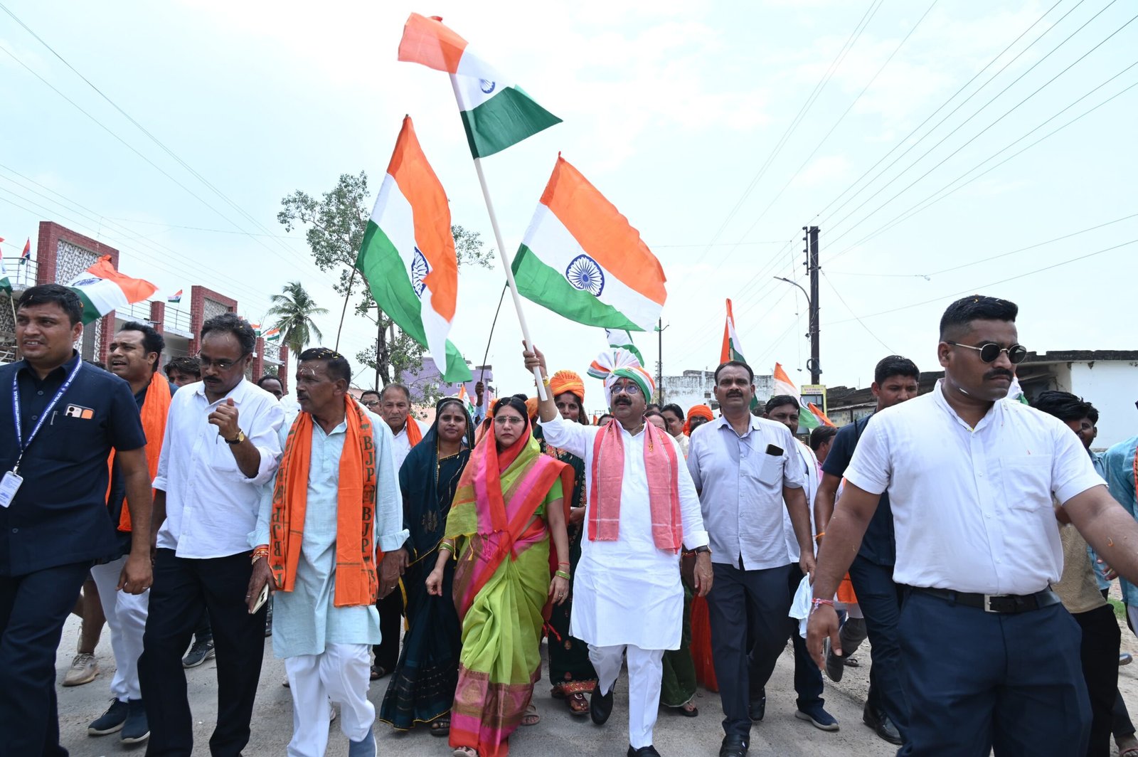 मुंगेली, 11 अगस्त 2025// शासन के निर्देशानुसार एवं कलेक्टर कुन्दन कुमार के मार्गदर्शन में आमजनों में देशभक्ति की भावना विकसित करने और राष्ट्रीय ध्वज के प्रति सम्मान बढ़ाने के उद्देश्य से 15 अगस्त तक जिले में ‘‘हर घर तिरंगा’’ कार्यक्रम का आयोजन किया जा रहा है। इस कार्यक्रम के तहत आमजनों को 15 अगस्त के दिन अपने घर पर राष्ट्रीय ध्वज फहराने के लिए प्रेरित किया जा रहा है। इसी तारतम्य में उप मुख्यमंत्री अरूण साव के नेतृत्व में लोरमी से ग्राम बटहा तक तिरंगा यात्रा का आयोजन किया गया। तिरंगा यात्रा में बड़ी संख्या में आमजन शामिल हुए। हाथों में लहराते तिरंगे और देशभक्ति के नारों से वातावरण देशप्रेम की भावना से सराबोर हो गया।