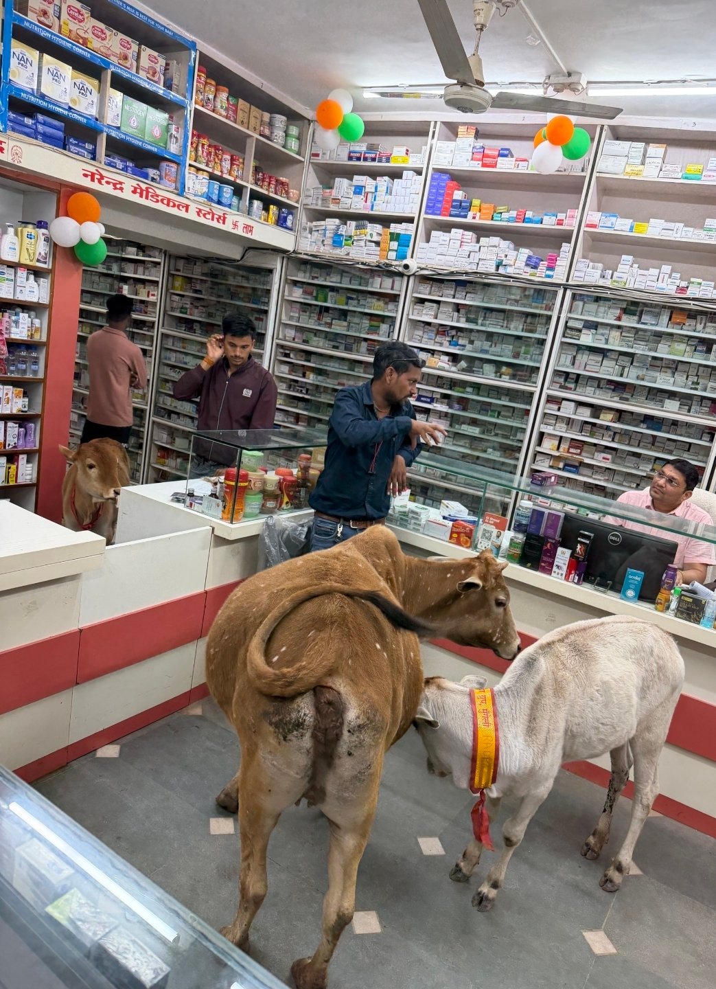 नगर के इस मेडिकल स्टोर में दृश्य आम दुकानों से बिल्कुल अलग होता है। यहाँ दवाइयों की अलमारियों के बीच ‘राधा’ नाम की गाय और उसके बछड़े ‘वृंदा’ व ‘किशोरी’ बेखौफ घूमते नजर आते हैं। ताज्जुब की बात यह है कि ये गौ-वंश किसी खूंटे या रस्सी से बंधे नहीं हैं। ये पूरी तरह स्वतंत्र और घुमंतू हैं, लेकिन कोठारी परिवार के साथ इनका रिश्ता इतना गहरा है कि प्रतिदिन सुबह दुकान का शटर खुलते ही राधा अपने बछड़ों के साथ खुद-ब-खुद दहलीज पर पहुँच जाती है।