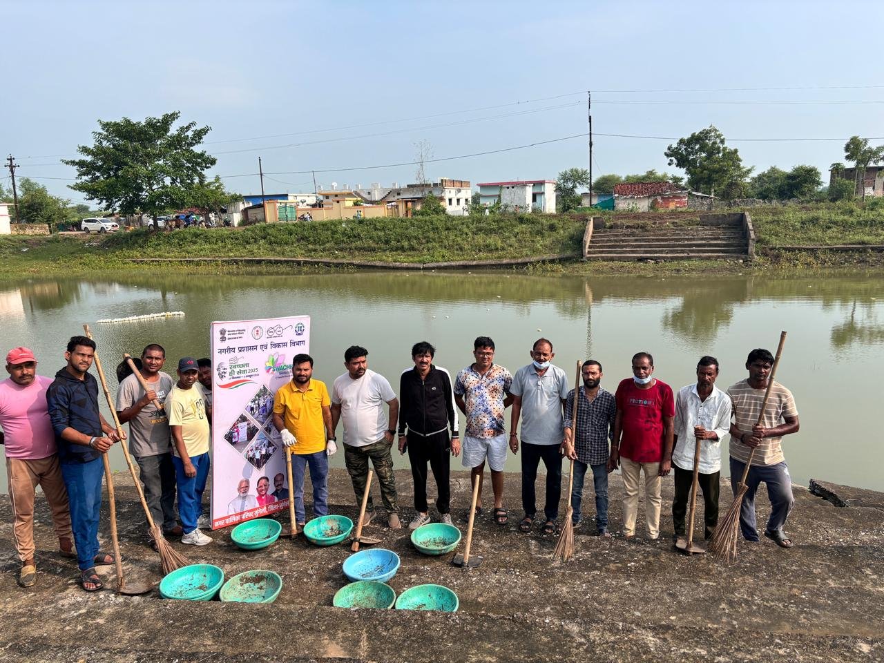 मुंगेली। नगरपालिका परिषद मुंगेली द्वारा शुक्रवार 26 सितंबर को स्वच्छता ही सेवा 2025 अभियान के तहत वार्ड क्रमांक 12 स्थित नवापारा तालाब में व्यापक सफाई अभियान चलाया गया। इस दौरान तालाब से जलकुंभी निकाली गई, सभी पचरी की सफाई की गई तथा तालाब के चारों ओर फैली घास और झाड़ियों की कटाई कर पर्यावरण को स्वच्छ बनाया गया।अभियान में नगरपालिका अध्यक्ष रोहित शुक्ला, वार्ड पार्षद संजय चंदेल, अजय साहू, विजय बंजरा, रामकिशोर देवांगन, अरविंद वैष्णव और सत्येन्द्र परिहार सक्रिय रूप से उपस्थित रहे। वहीं, मुख्य नगरपालिका अधिकारी होरीसिंह ठाकुर, नगरपालिका के कर्मचारी और वार्डवासी भी अभियान में सहयोगी बने।यह पहल नगरवासियों को स्वच्छता के प्रति जागरूक करने और सार्वजनिक स्थलों को स्वच्छ बनाए रखने के उद्देश्य से आयोजित की गई।