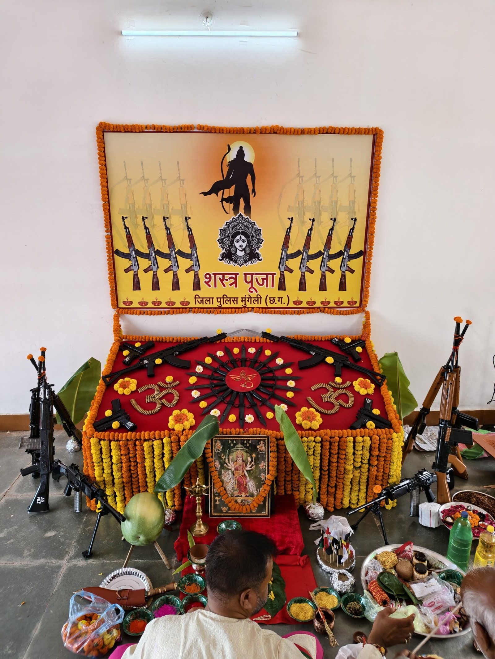 विजयादशमी पर मुंगेली पुलिस ने की शस्त्र पूजा, सुरक्षा और शांति का लिया संकल्प