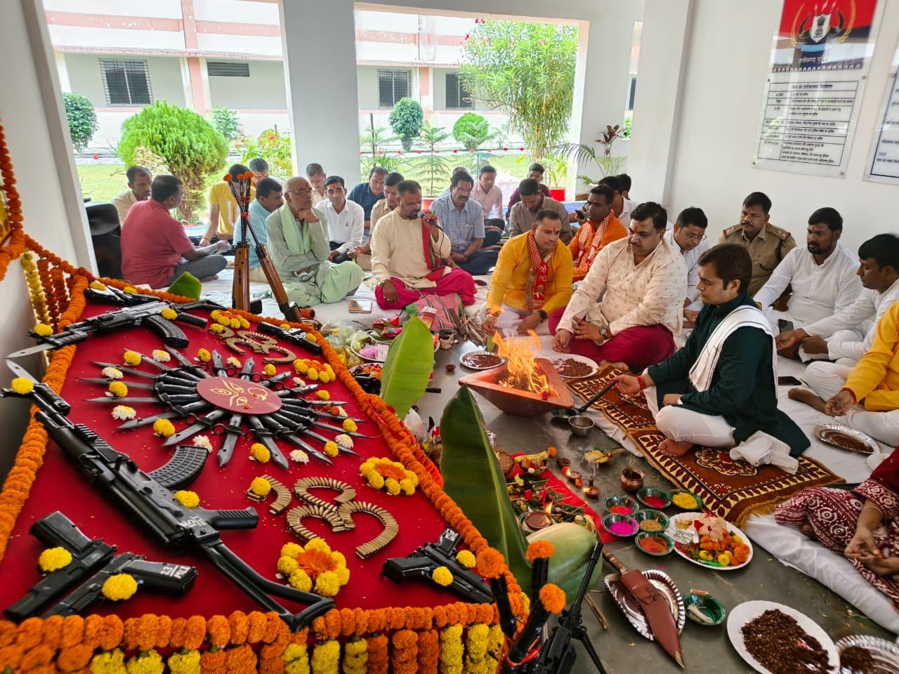 उन्होंने जिलेवासियों को विजयादशमी की हार्दिक शुभकामनाएँ दीं और पर्व को शांतिपूर्ण एवं सुरक्षित वातावरण में मनाने की अपील की।परंपरा अनुसार पूजा-अर्चना और हवाई फायरिंगशस्त्र पूजा के दौरान पुलिस जवानों और अधिकारियों ने शस्त्रों एवं वाहनों को सजाया और पारंपरिक विधि-विधानों से उनकी पूजा की। अंत में पुलिस अधीक्षक द्वारा परंपरानुसार रखिया कद्दू की प्रतीकात्मक काटने की रस्म और हवाई फायरिंग की गई। तत्पश्चात वाहनों की पूजा कर पुलिस बल ने जनसुरक्षा का संकल्प लिया। जिले के सभी थानों में भी शस्त्र पूजा आयोजित की गई।