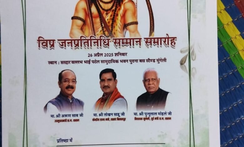 Read More »खबरदार न्यूज़ मुंगेली ✍🏻/ सर्व ब्राह्मण परिषद मुंगेली द्वारा शनिवार को दोपहर 1 बजे आयोजित जिले के विप्र जनप्रतिनिधियों के…