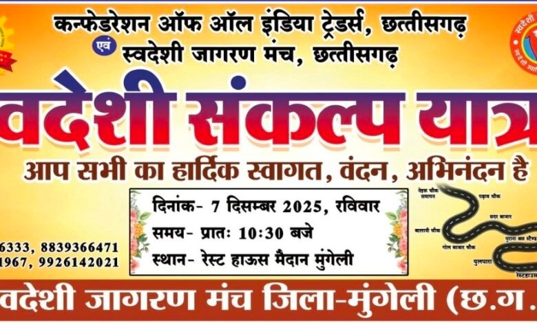 Read More »मुंगेली। कन्फेडरेशन ऑफ ऑल इंडिया ट्रेडर्स (CAIT) एवं स्वदेशी जागरण मंच के संयुक्त तत्वावधान में स्वदेशी एवं आत्मनिर्भर भारत के…