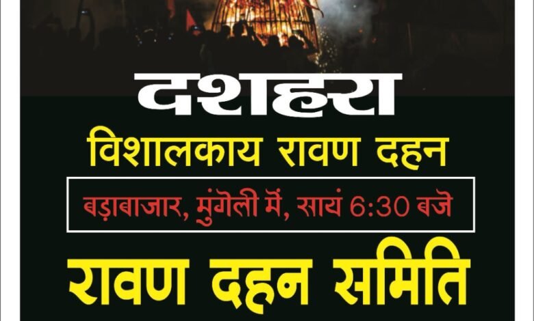 Read More »मुंगेली। परंपरा को निभाते हुए बड़ा बाजार दशहरा उत्सव समिति की ओर से इस वर्ष भी भव्य रावण दहन कार्यक्रम…